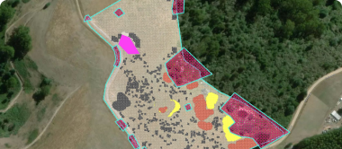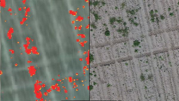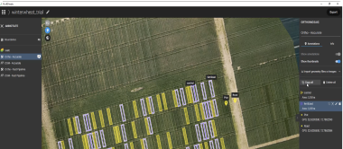 Ferramenta de seleção assistida por IA para detetar e selecionar rapidamente ninhos de ervas daninhas, danos e outras anomalias em ortomosaicos e camadas de índice.