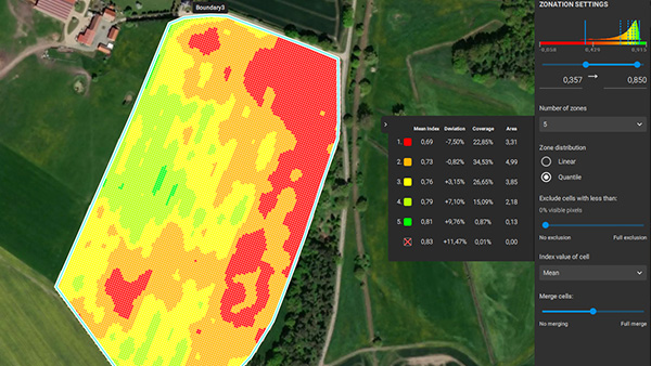 Agregue a informação dos mapas de índice de vegetação em zonas e atribua as doses de aplicação.